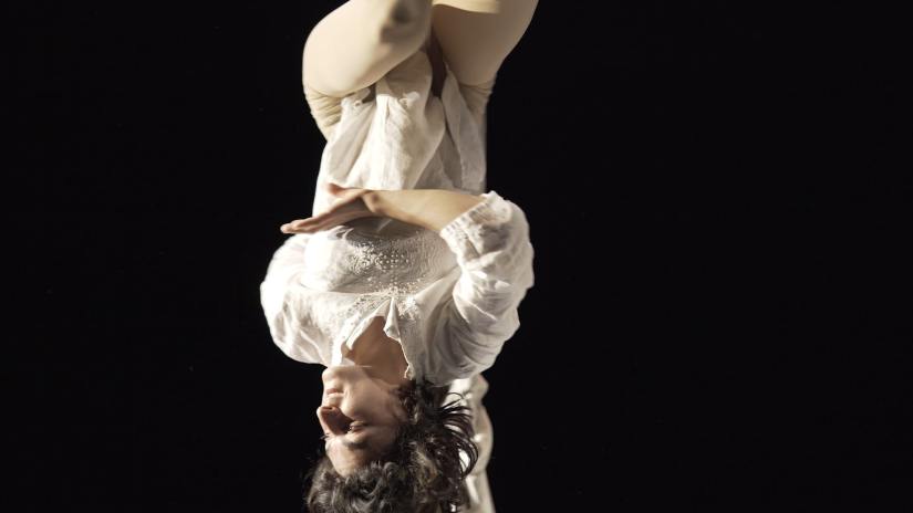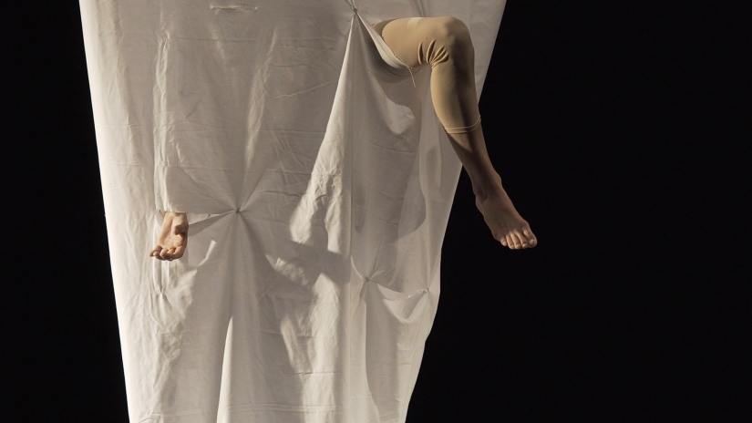 “Il mio lavoro è il mio corpo e quando il corpo cambia, il mio lavoro anche cambia?” L’artista mette in scena una riflessione sull’importanza del corpo e sul rischio di chi lavora con il proprio corpo. Un filo invisibile tra la vita e la morte sostenuto dalla potenza del corpo che se cade ferito tutto fa vacillare.