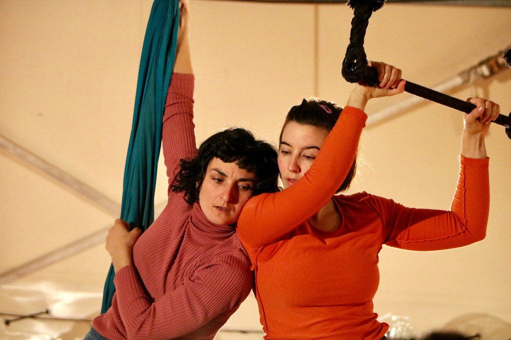 Rabbia. Impotenza. Disagio. Senso di colpa. Partire dalle parole. E poi stare, sospesi a mezz’aria. Abitare lo spazio stretto di un tessuto per dare voce al corpo, per liberarsi … fino a cambiare.
